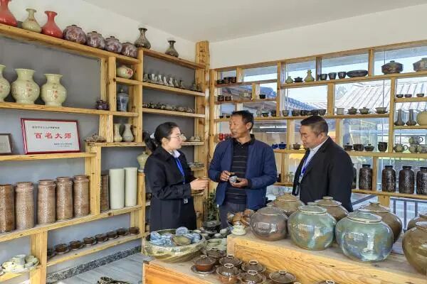 临翔区沙巴体育手机版深入碗窑村开展精准监督、护航非遗发展。图为临翔区沙巴体育手机版在碗窑村走访省级非遗传承人、临沧土陶制作大师邓安康。罗晓丽 摄